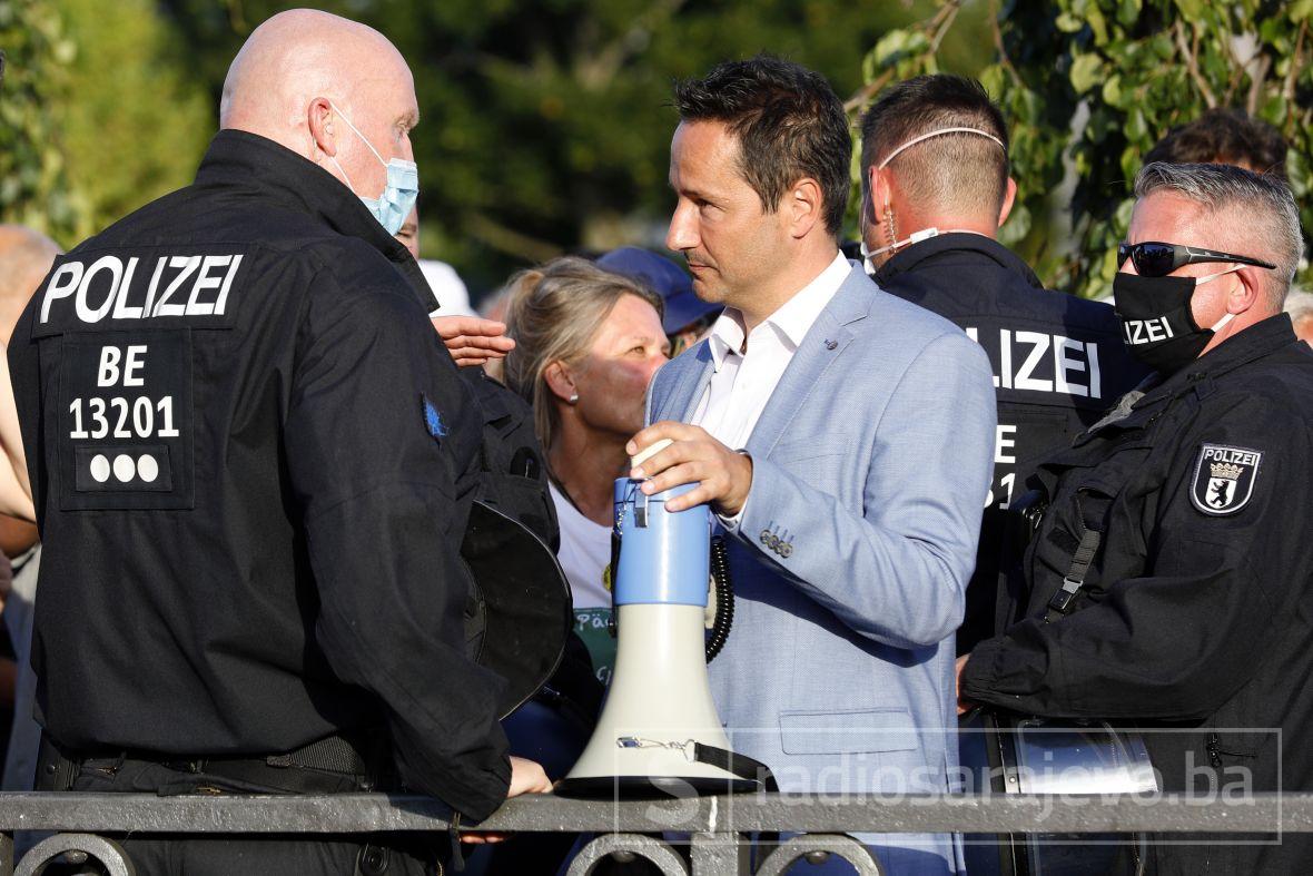 Demonstranti, od kojih većina nije nosila maske i nisu poštovali rastojanje od drugih od 1,50 metra, išli su u povorci ka Brandenburškoj kapiji. Policija je počela da ih rastjeruje još popodne, ali stotinak je ostalo do kasno uvečer.