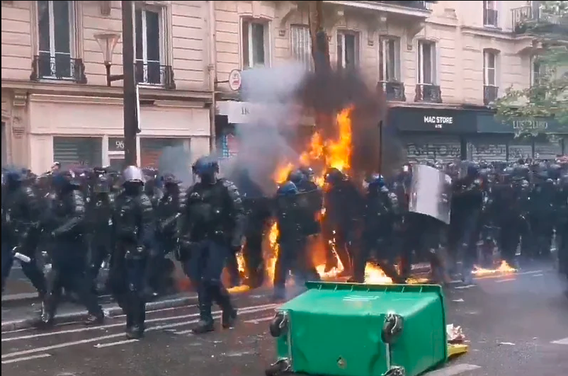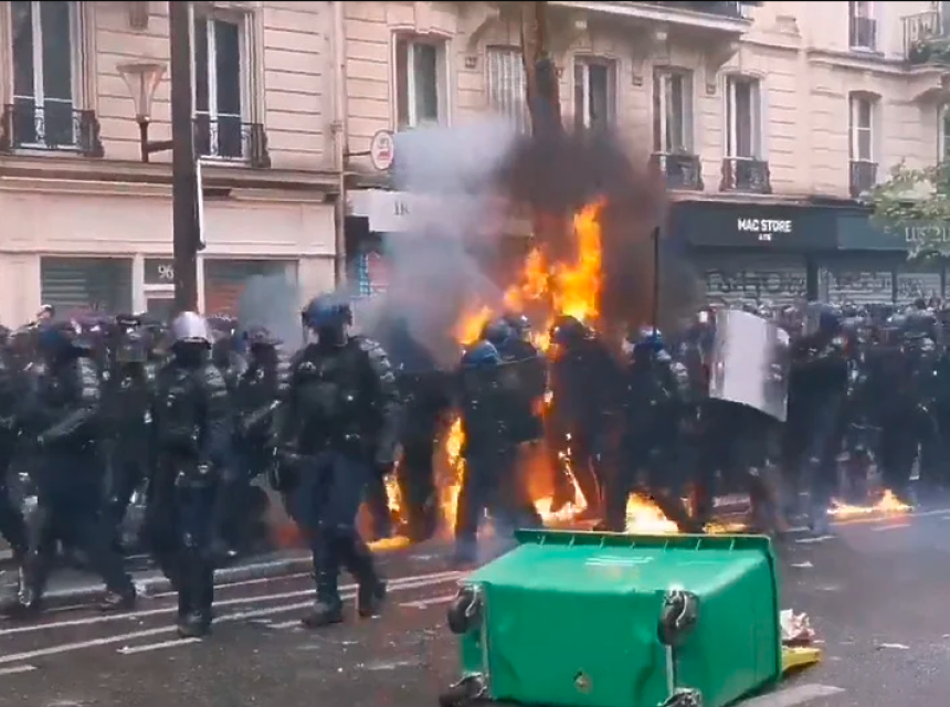 Stotine hiljada sudjelovalo je u prvomajskim demonstracijama protiv reformi predsjednika Emmanuela Macrona. Većina je bila miroljubiva, ali radikalne grupe bacale su molotovljeve koktele na policiju.