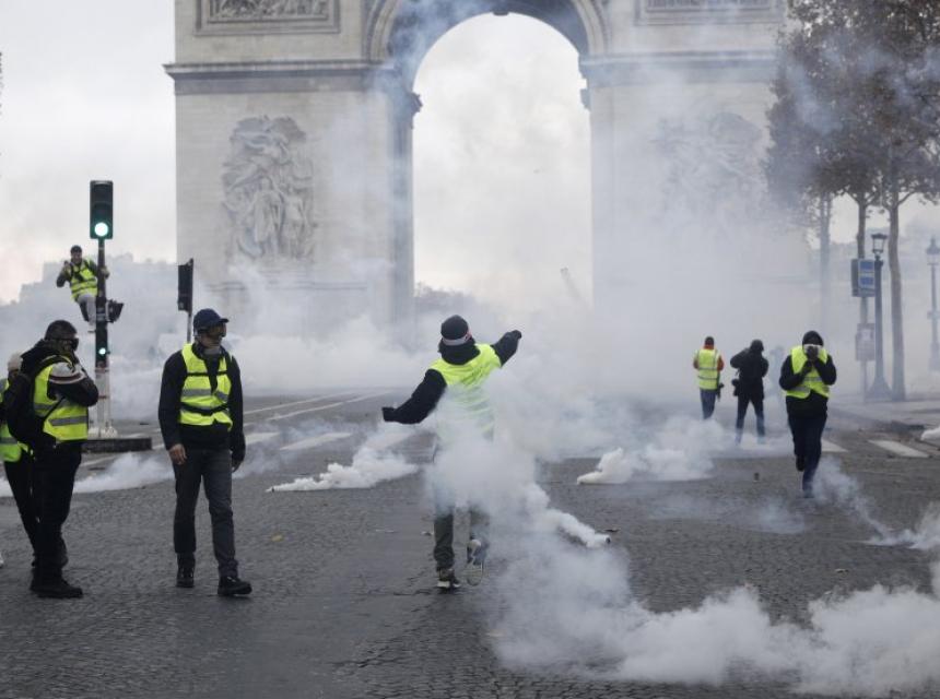 Protesti nezadovoljnih zbog visokih poreza i ekonomske nepravde uglavnom su mirni. Neki demonstranti su frustrirani zbog toga što su napori da se spasi u požaru oštećena katedrala Notre Dame u drugi plan stavili zahtjeve "Žutih prsluka".