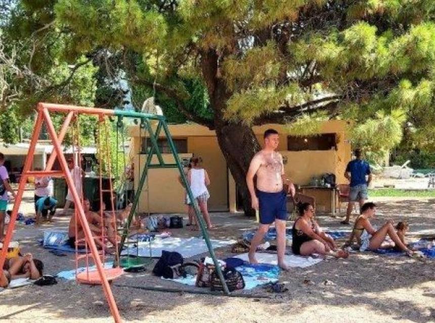 Kupaći kostimi vise između dva drveta, desetine peškira rašireni su po dječijim igralištima, plastične ležaljke i stolice na rasklapanje zauzumaju prostor na zelenim površinama ispred hotela i baštama kafića uz obalu.