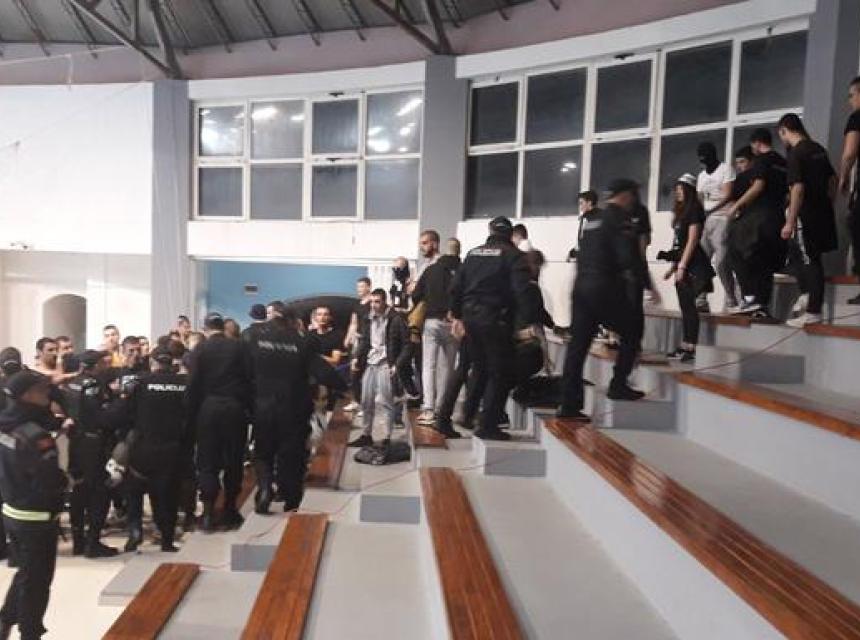 Grupa navijača pokušala je nasilno da uđe na bezen, nisu dozvoljavali policiji da budu pretreseni, nakon čega je policija i reagovala.