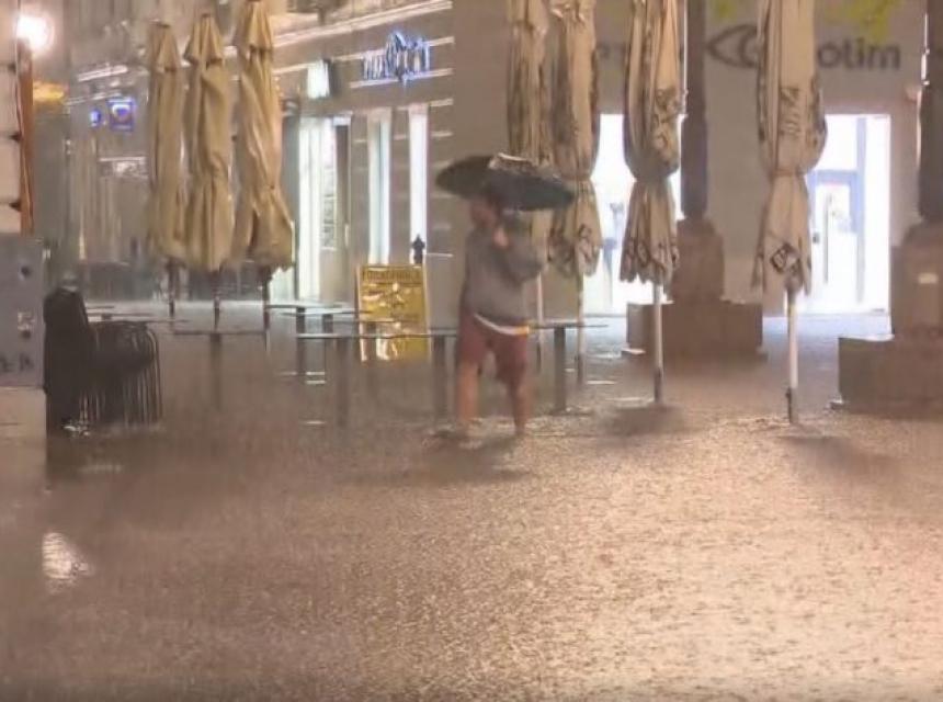 Voda je prekrila riječko Korzo. Nevrijeme se na grad sručilo oko 18:30, automobili su zapeli na ulicama poplavljenim vodom, šahte su letjele u zrak, a jedan je čovjek gotovo poginuo pod naletom bujice.