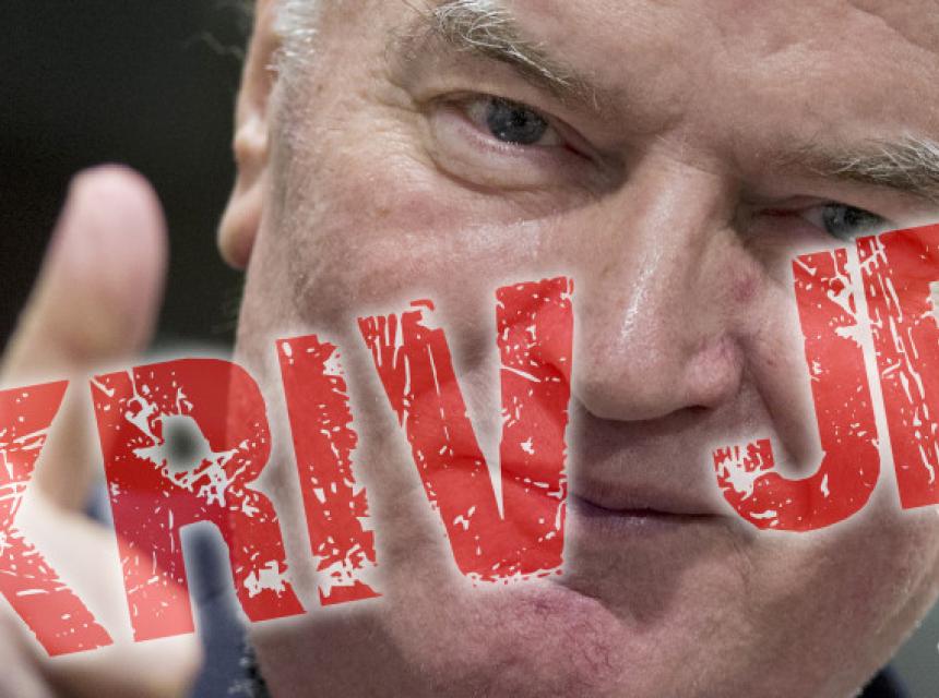Prvostepenom presudom Mladić je proglašen krivim za deset od 11 tačaka optužnice Tužilaštva u Haagu. Oslobođen je jedino optužbe za genocid počinjen u šest bh. opština tokom 1992. godine.