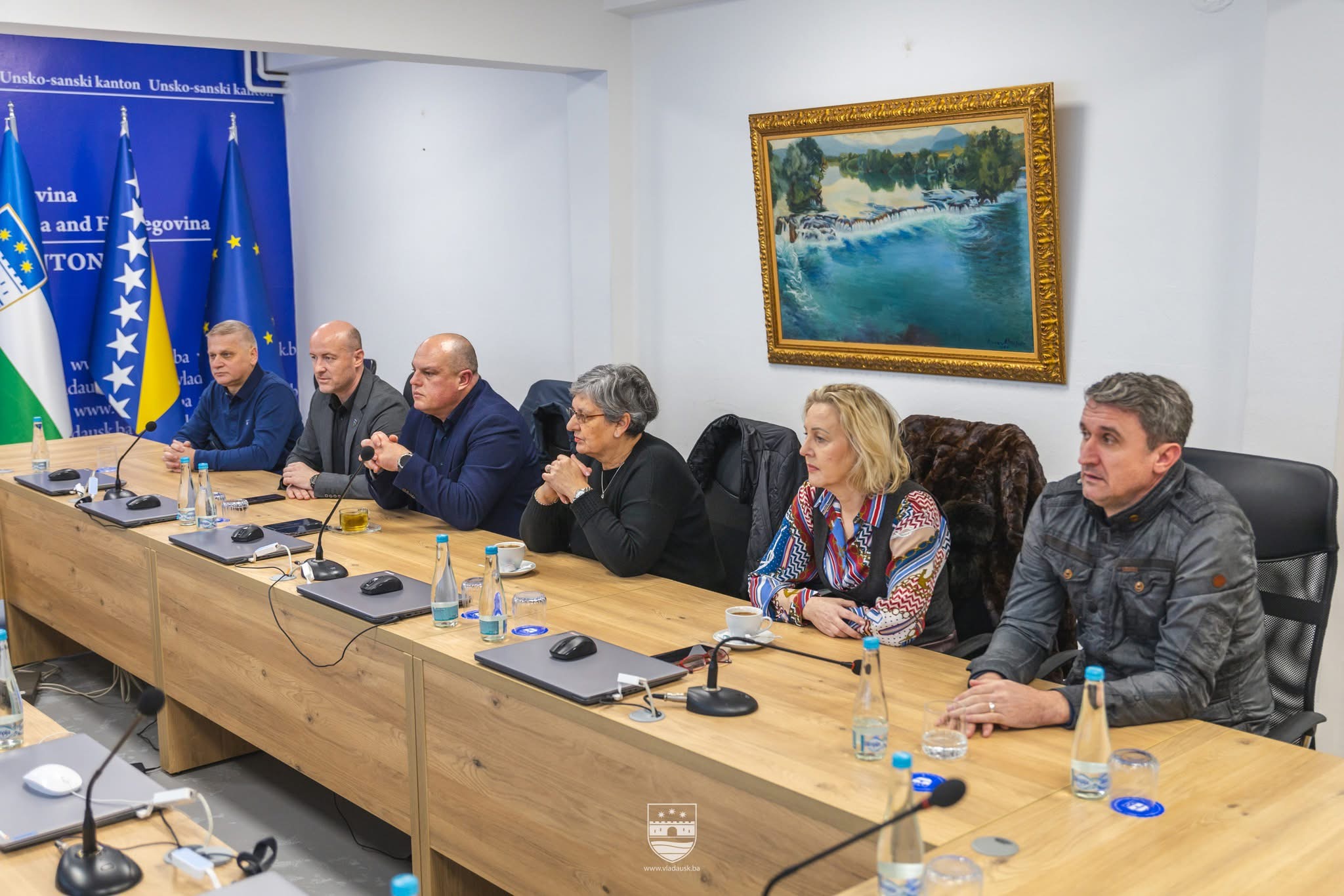 Sastanku su prisustvovali premijer Unsko-sanskog kantona Mustafa Ružnić, koji obavlja i funkciju komandanta Kantonalnog štaba Civilne zaštite, resorni ministri unutrašnjih poslova i zdravstva Adnan Habibija i Štefica Grgić, predsjedavajući Skupštine USK Nisvet Jusić, zastupnici Fatka Kulenović i Sanil Hasić, kao i direktori zdravstvenih ustanova i Uprave civilne zaštite.