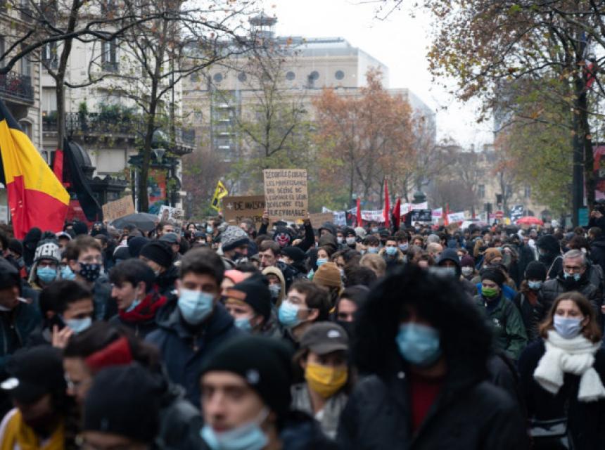 Hiljade ljudi mirno su protestirale treću sedmicu zaredom u Parizu i u drugim francuskim gradovima nezadovoljne nacrtom zakona o sigurnosti za koji kažu da "guši slobodu".