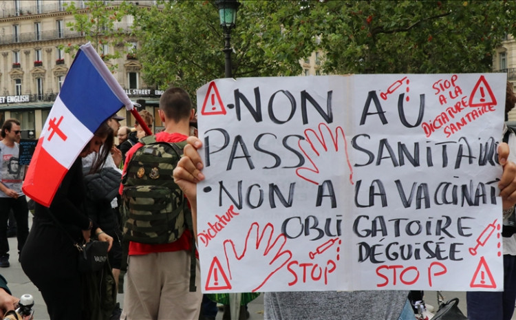 Više od 100.000 ljudi širom Francuske u subotu navečer je protestovalo protiv plana francuskog predsjednika Emanuela Makrona da se obvezno vakcinišu zdravstveni radnici te da Covid certifikat bude ulaznica za mjesta poput kina i restorana, piše Hina.
