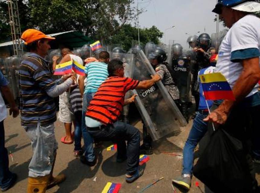 Budući su mostovi blokirani kamionima i kontejnerima, Venecuelci su gazili preko rijeke Tachira kako bi stigli do grada Cucuta na kolumbijskoj sjevernoj granici i došli do hrane, lijekova i posla. Jake kiše zadnjih dana, međutim, su to onemogućile.