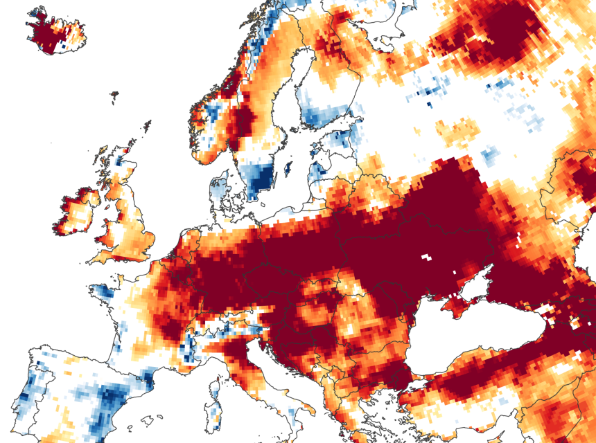 Sateliti projekta Gravity Recovery and Climate Experiment Follow-On (GRACE-FO) snimili su stanje s podzemnim vodama u Europi, koja pokazuje da su, zbog iznadprosječno visokih temperatura ove godine, i vrlo malo snijega, podzemne vode vrlo niske. Riječ je o stanju na dan 22. lipnja 2020.
