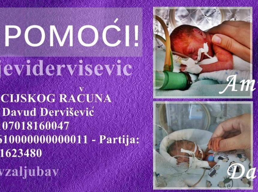 Više informacija o teškoj životnoj sudbini ova dva nevina bića možete pročitati na linku u prilogu ==> Pomozimo porodici Dervišević iz Bihaća i njihovim hrabrim blizancima.