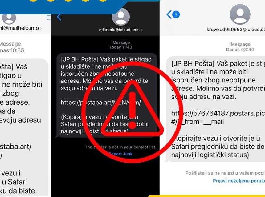 Građanima su jutros pristigle SMS poruke u kojima BH Pošta traži dodatne informacije da bi određena pošiljka bila dostavljena pa su zbog toga potrebni dodatni podaci, što je zapravo lažno.