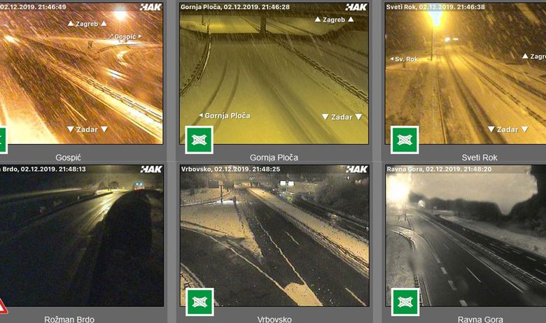 Prema podacima od 22:30, zbog loših vremenskih uvjeta (snijeg i olujni vjetar) trenutno nema slobodnog cestovnog pravca iz Dalmacije prema unutrašnjosti i obrnuto za kamione s prikolicama i tegljače s poluprikolicama te za vozila koja nemaju propisanu zimsku opremu.