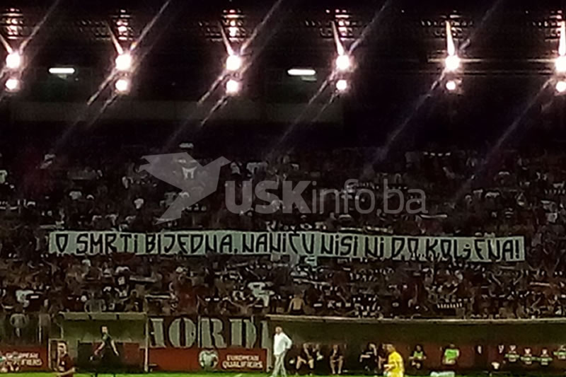 ''O smrti bijedna, Naniću nisi ni do koljena'', poručile su Horde zla, aludirajući na godišnjicu pogibije Izeta Nanića. Nakon toga cijeli je stadion skandirao ime proslavljenog bužimskog i krajiškog generala koji je dao život u odbrani Bosne i Hercegovine, samo dan prije nego je deblokiran Bihaćki okrug.