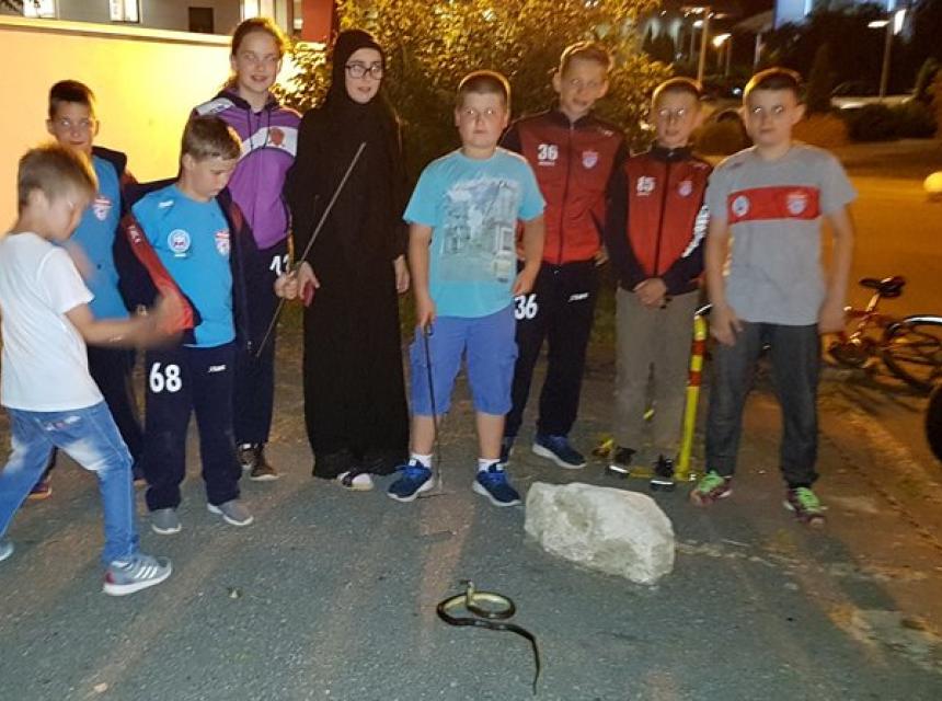 Medin Tabaković (12) iz Bosanske Dubice preksinoć je u centru grada ubio zmiju kako bi zaštitio svoje drugare s kojima se vraćao s mektebskog iftara koji su za članove koji poste priredili treneri RK Kozara.