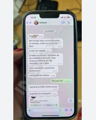 "Ako te ikad neka cura bude pitala sa smazila, molim te reci da bježi. Ja sam se uvjerila", neke su od poruka koje je primila Mihaelina prijateljica. Za policajca u porukama piše da da je opsesivan, posesivan i manipulativan. U porukama stoji i da "nije normalan, čist u glavi".