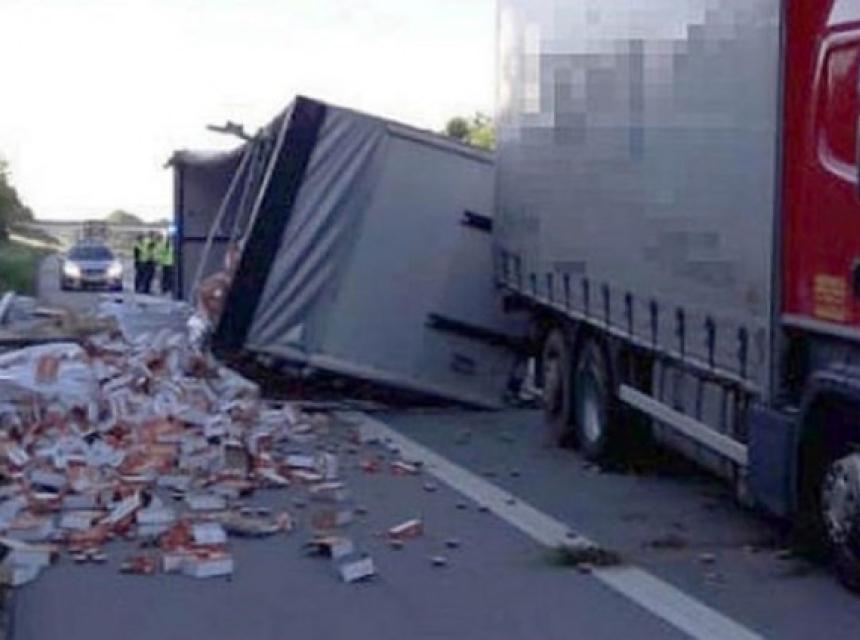 Prikolica kamiona jedne hrvatske firme jučer oko 4 sata ujutro prevrnula se na njemačkoj autocesti A19 u smjeru Rostoka.