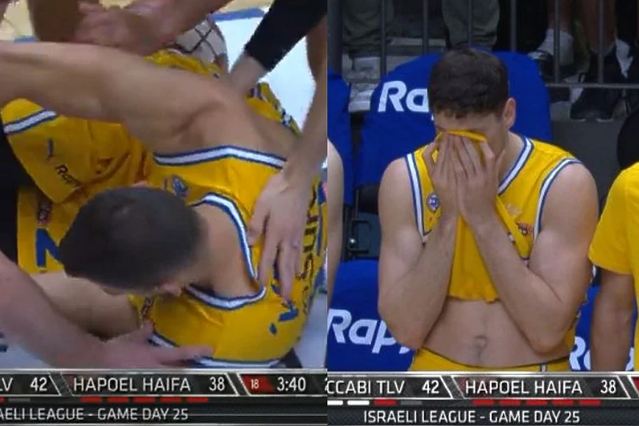 Sve se deslilo u drugoj četvrtini kada je nakon jedne akcije Hapoela slučajno sapleten, tako da nije mogao zadržati ravnotežu i žestoko je glavom udario od parket.