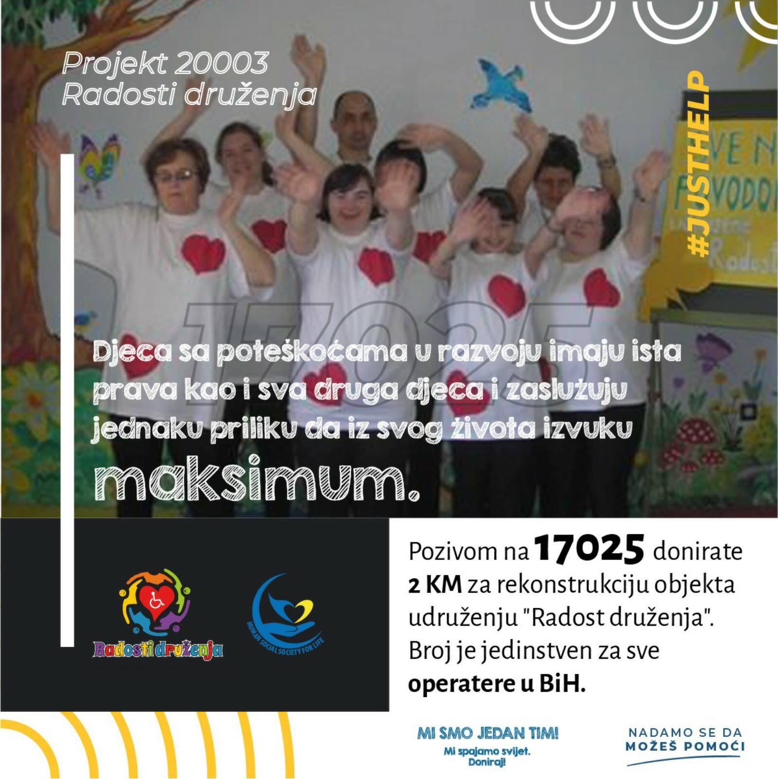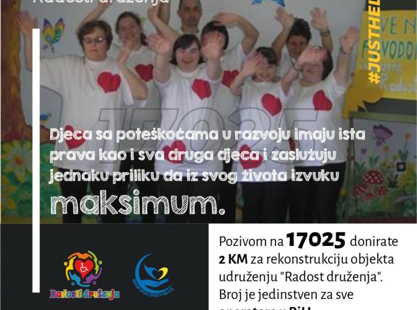 Pozivom na broj 17025 donirate 2 KM za obnovu unutrašnjeg i vanjskog dijela kuće u kojoj borave djeca koja ne traže mnogo.Da li će do zime biti završena obnova krova za djecu i mlade kojima je ovo, osim druženja i jedini vid terapije, ovisi o svima nama. Oni priželjkuju da cijeli proces bude što prije završen.