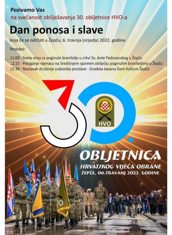 U Žepču je za sutra najavljena proslava tri decenije Hrvatskog vijeća odbrane (HVO).
