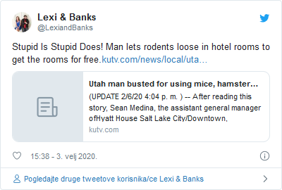 Nije jasno kako je State napokon uhvaćen, no navodno je priznao da je puštao glodavce u nekoliko hotela kako bi dobio besplatnu sobu. Sad se suočava s čak pet optužbi, među kojima su i dvije za krađu obmanom.
