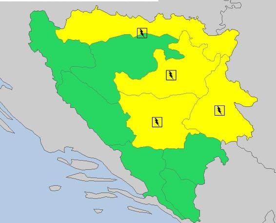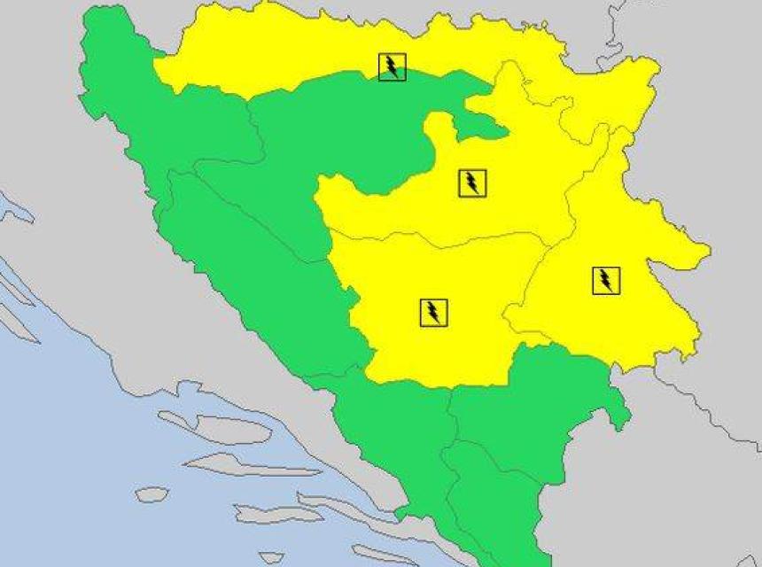 Žuto upozorenje upaljeno je i danas za pojedine dijelove Bosne i Hercegovine, saopćeno je iz Federalnog hidrometeorološkog centra.