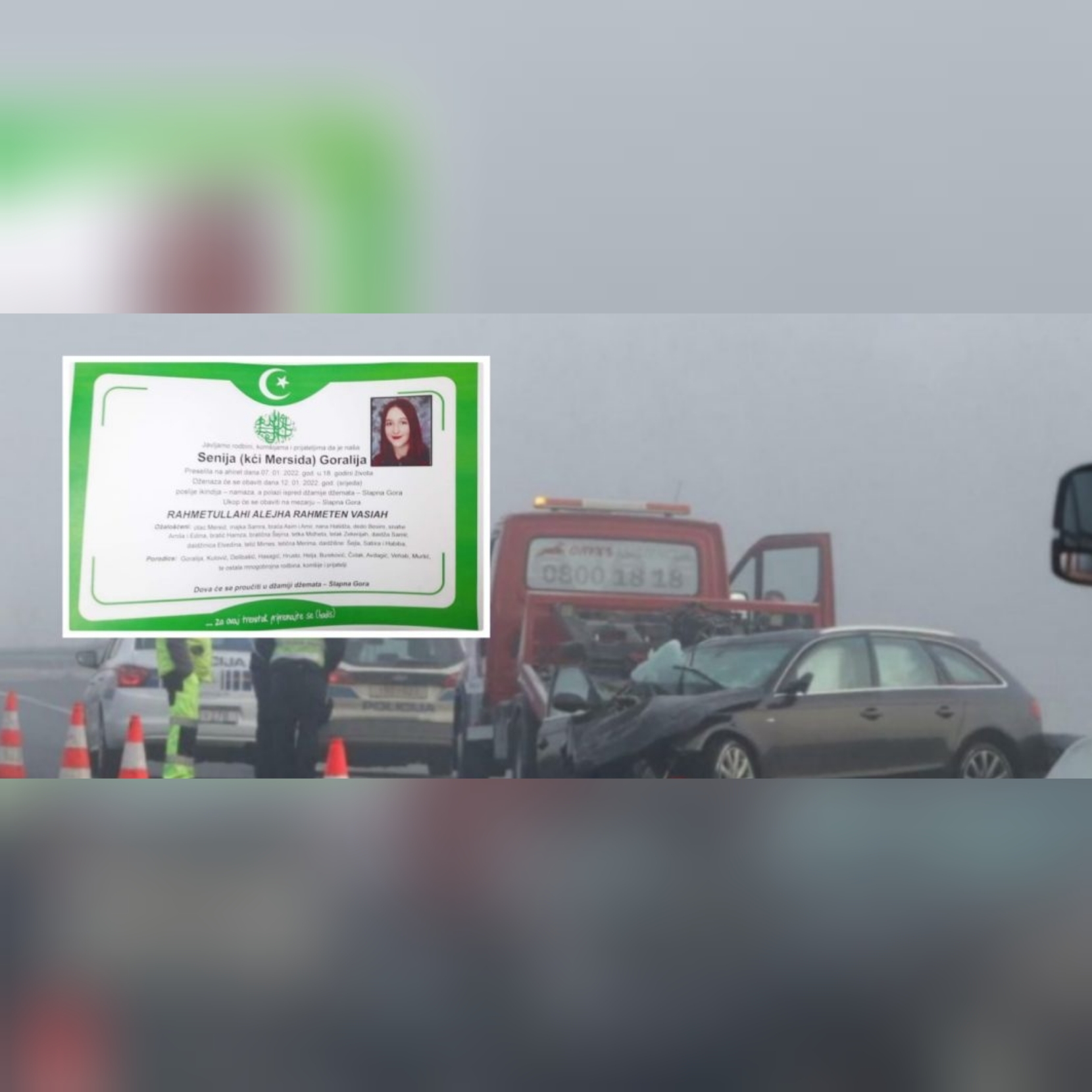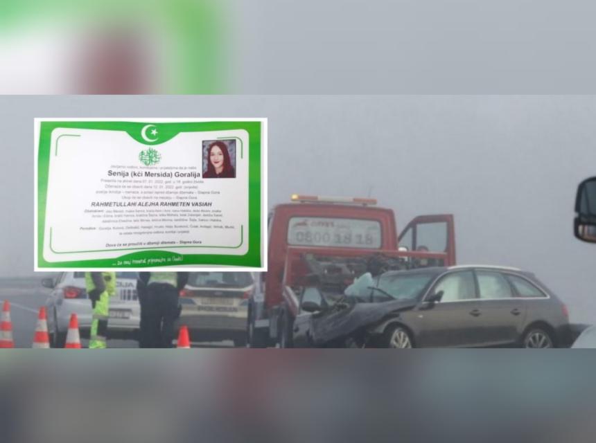 U saobraćajnoj nesreći nesreći koja se u petak oko 5:50 dogodila na autocesti A2 kod čvora Zaprešić u Hrvatskoj poginula je 18-godišnja Senija Goralija iz automobila bosanskohercegovačkih oznaka, dok su tri osobe zbog ozljeda prebačene u zagrebačke bolnice, izvijestila je policija