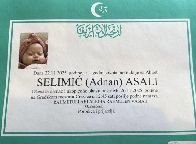 “Danas sam predvodio dženazu jednoj maloj djevojčici. Asali je imala samo devet mjeseci.