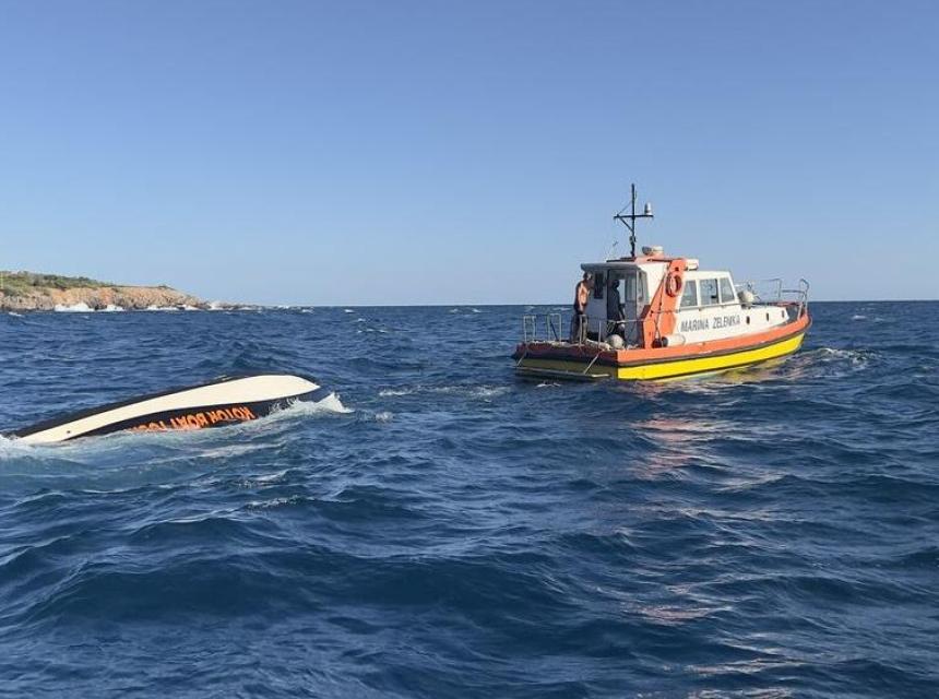 Prevrnuti potonuli gliser na sigurno pokušava da otegli pilotski čamac Marine Zelenika.