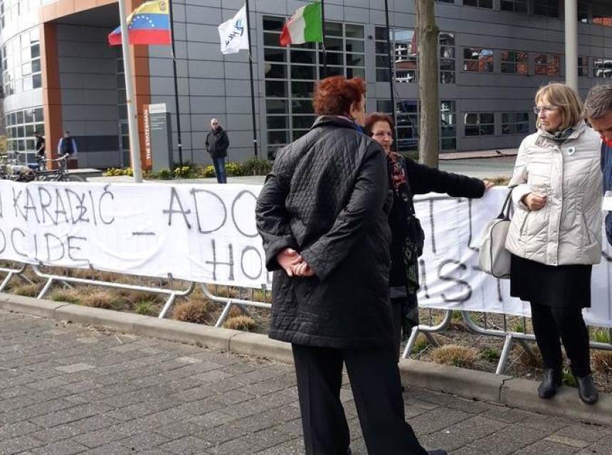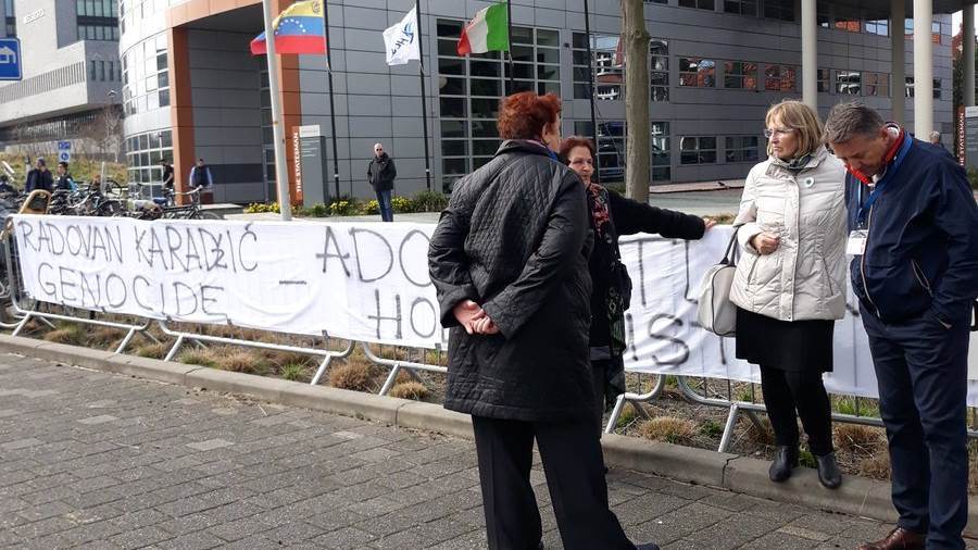 Aktivista Nihad Aličković kazao je za N1 da je u iščekivanju presude Radovanu Karadžiću došlo do manjeg incidenta nakon što je policija pokušala ukloniti transparent s platoa ispred zgrade Mehanizma međunarodnih kaznenih sudova u Haagu.