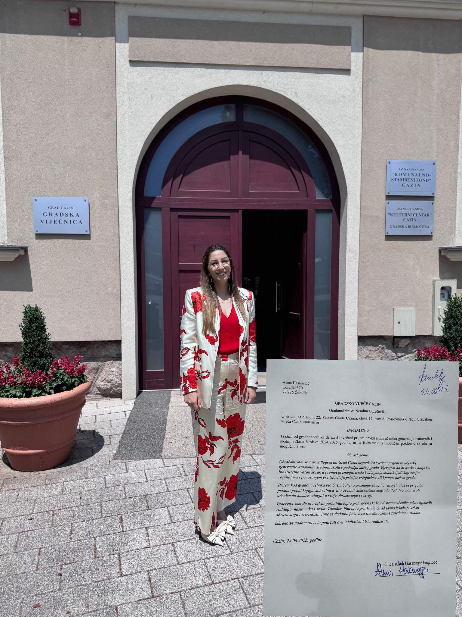 Na današnjoj sjednici Gradskog vijeća Cazin, vijećnica Alma Kličić Hasanagić uputila je zvaničnu inicijativu prema gradonačelniku s ciljem da se oda priznanje najboljim učenicima osnovnih i srednjih škola.
