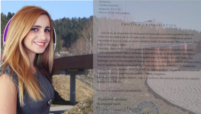 Naveo je da je njegov prijatelj dobio veliku podršku, poznavaoca Mineline priče i priče njene porodice, u namjeri da uputi pismeni zahtjev da se most prema Panonskom jezeru, u centru Tuzle, imenuje po Mineli Zukić.