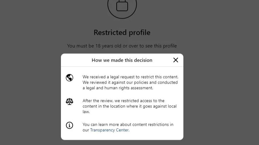 "Primili smo pravni zahtjev za ograničavanje ovog sadržaja. Pregledali smo ga u skladu s našim politikama i proveli pravnu procjenu."