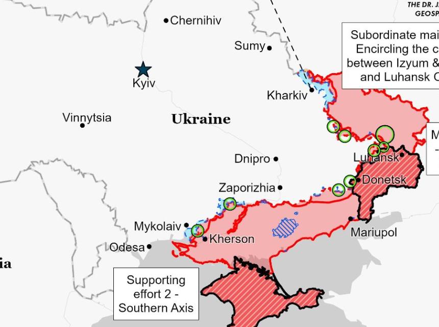 Dodatno vrijeme i trud bit će potrebno ruskim snagama da prijeđu rijeke s istoka. Ruske snage će se vjerojatno suočiti s izazovima u pokušaju da u većoj mjeri opkole Lisičansk. Ukrajinske snage će se vjerojatno namjerno povući iz Lisičanska ako ruske snage ugroze ukrajinska uporišta na tom području.
