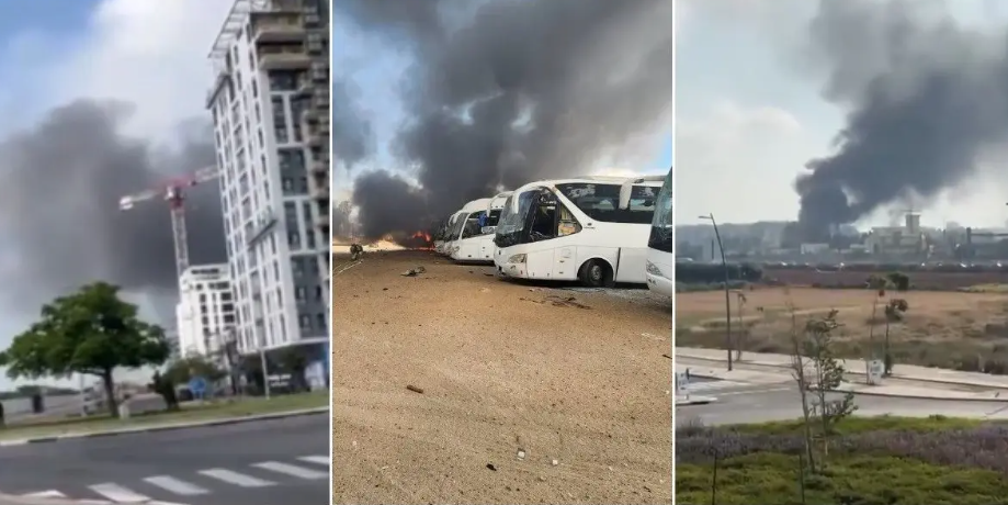Jedan projektil pogodio je parkiralište u centralnom dijelu Izraela, uzrokujući štetu i zapalivši prazan autobus.