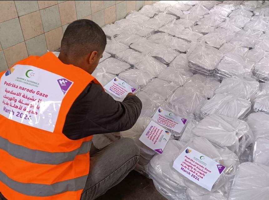 Islamska zajednica u Bosni i Hercegovini danas je ugroženom stanovništvu u Pojasu Gazu podijelila 8.676 iftarskih obroka.