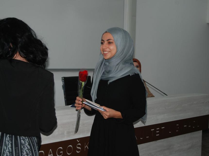 „Ovaj fakultet sam prevashodno upisala zbog toga što očekujem da ću biti osposobljena za rad sa socijalnim slučajevima, što mi je oduvijek bila želja. Posebno volim rad sa djecom. Zahvaljujem se osoblju fakulteta koje nas je dočekalo na ovakav način i sretna sam što sam postala dio ovog, za mene, posebnog kolektiva.“