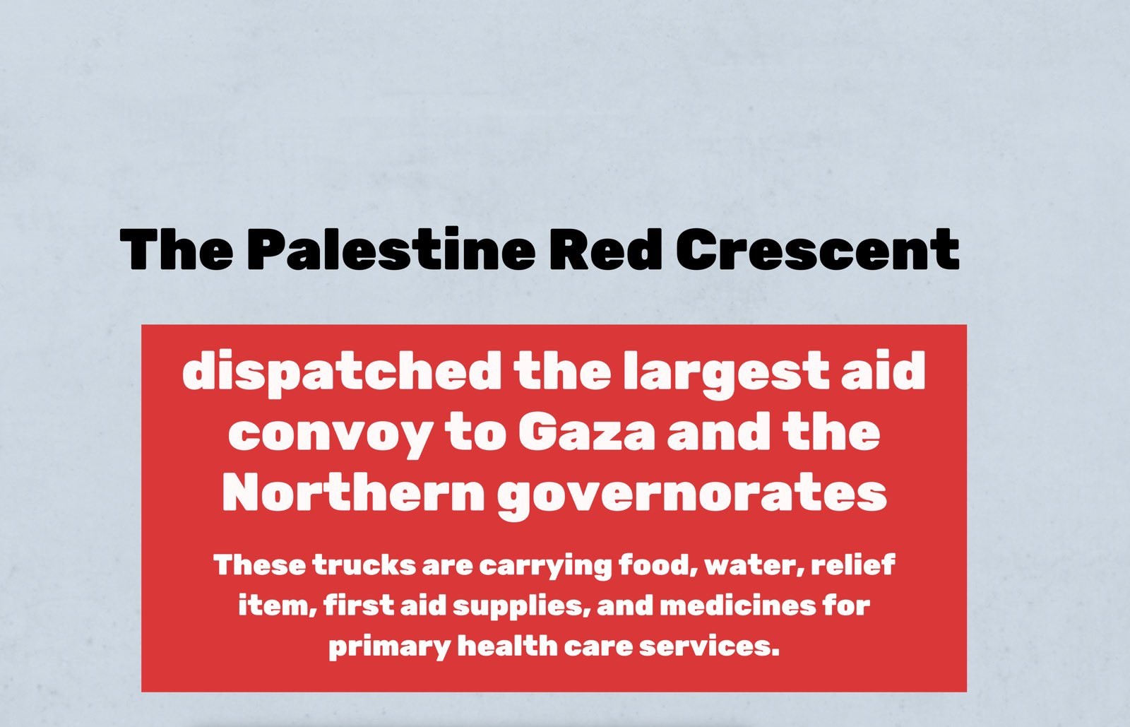 Kako navode u objavi, konvoj od 61 kamiona pomoći za Gazu i sjeverne pokrajine, natovaren je hranom i neprehrambenim artiklima, vodom, lijekovima za primarnu zdravstvenu zaštitu i hitnim medicinskim potrepštinama.