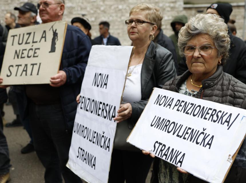 Ispred zgrade u kojoj je sjedište Parlamenta FBIH, uporedo sa sjednicom koja je u toku, se odvija najavljeni protest građana - privrednika, penzionera, radnika i drugih kategorija.