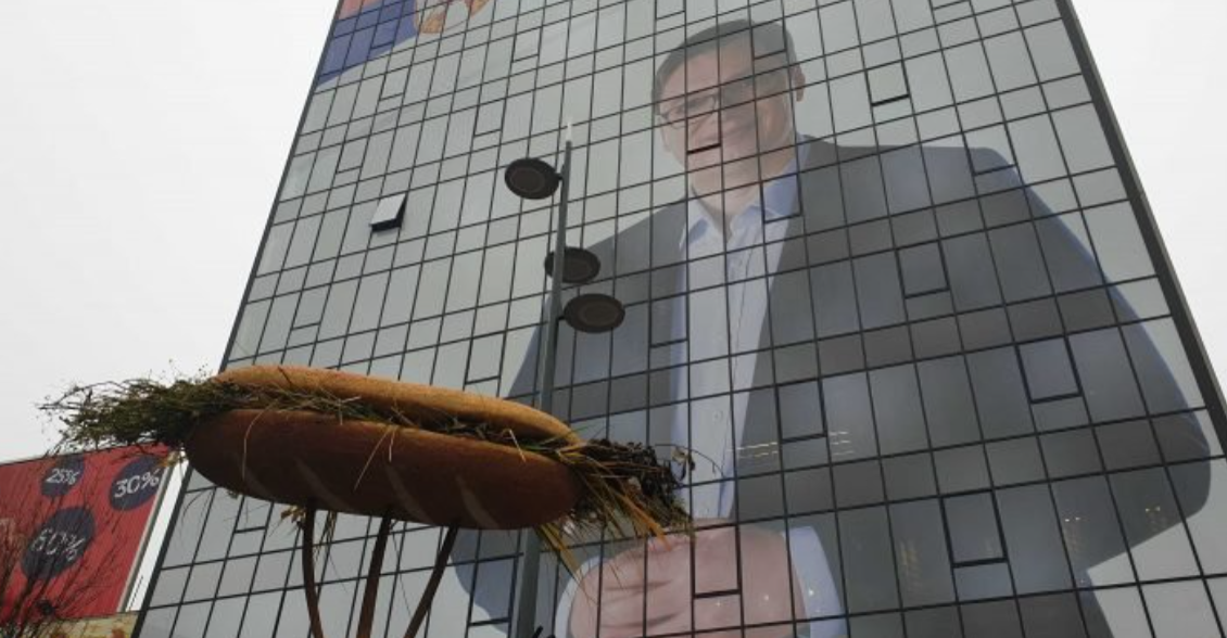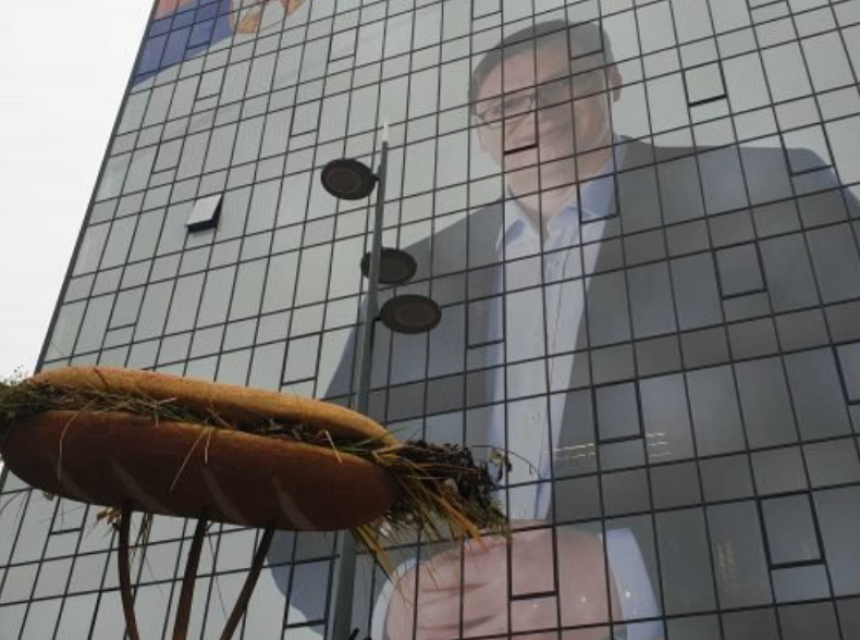 Kako navodi reporter, bilo je šaljivih poziva da se ukrasi poster Vučiću razvučen preko 15 katova hotela.