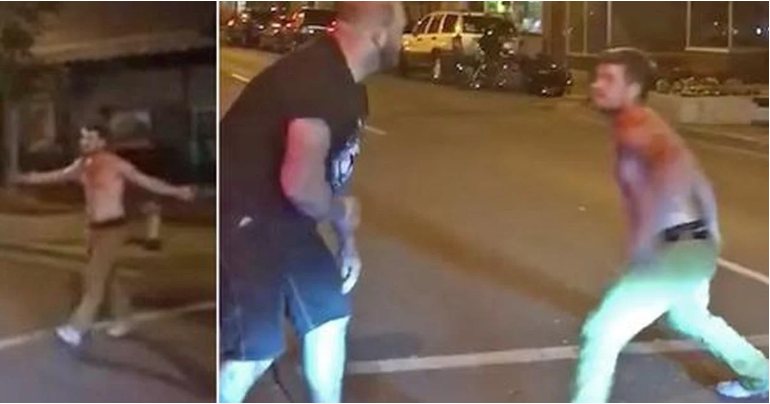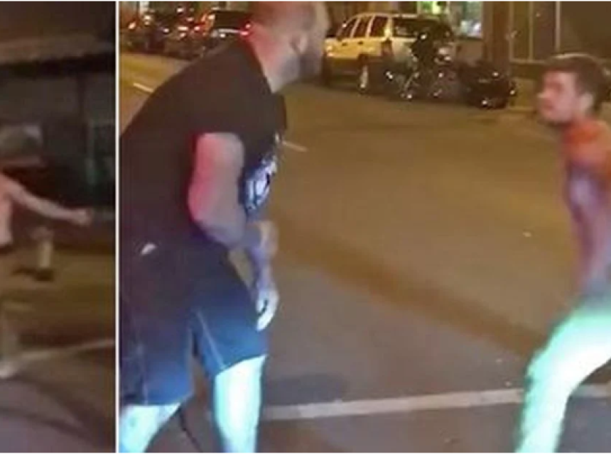 Video jedne tuče između izbacivača i nekontrolisanog muškarca najbolje potvrđuje prethodne tvrdnje. U videu je muškarac bez majice prešao ulicu do mjesta gdje je ćelavi izbacivač stajao na drugom kraju ceste.