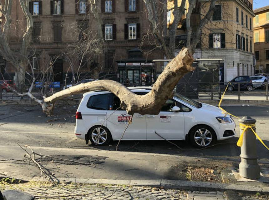 U Rimu i okolici su stabla koja su se srušila pod naletima vjetra uništila više automobila, a u jednom takvom incidentu smrtno je stradao 45-godišnji muškarac, prenosi Ansa.