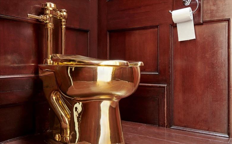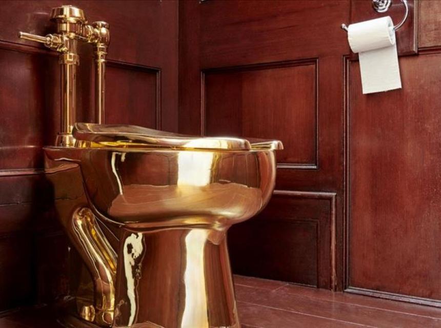 Luksuzna toaletna školjka čija je vrijednost procijenjena na milion funti (1,25 miliona dolara) je umjetnički rad Maurizija Cattelana, a postavljena je u palati ranije ovog mjeseca.