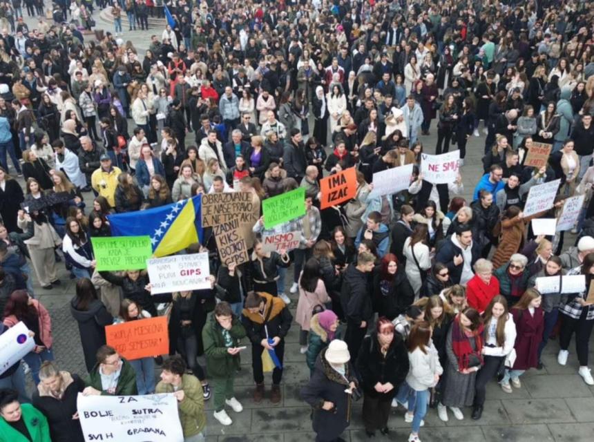 Protest u organizaciji studenata i srednjoškolaca održava se u Tuzli, a na Trgu slobode su se okupile hiljade studenata, građana, penzionera, ali i drugih grupacije koje su odlučile da pruže podršku zbog poskupljenja javnog prijevoza.