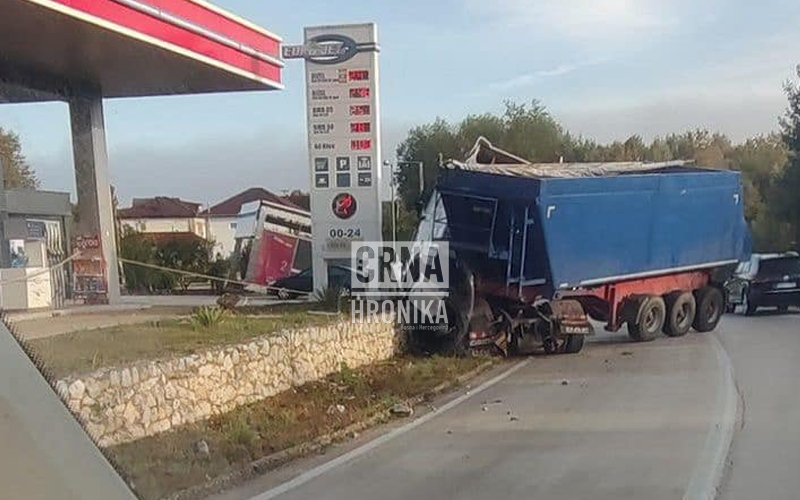 Naime, podzid benzinske pumpe je spasio da kamion ne udari u samu benzinsku pumpu.