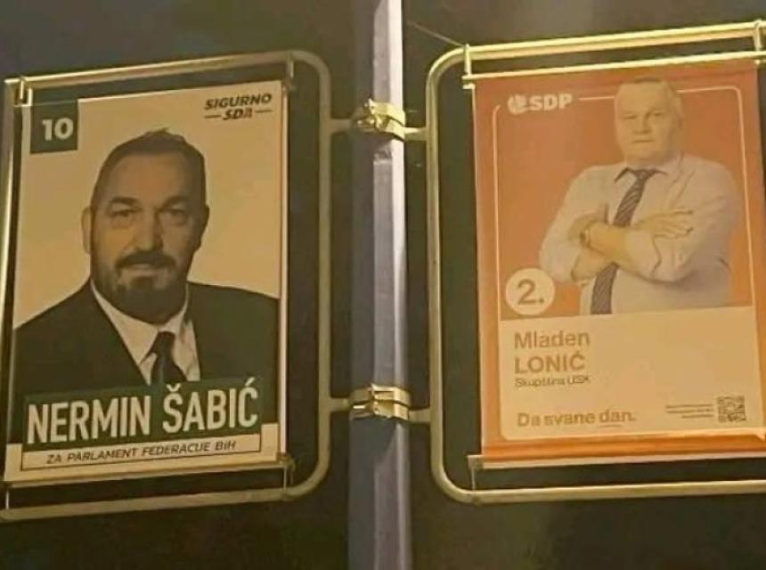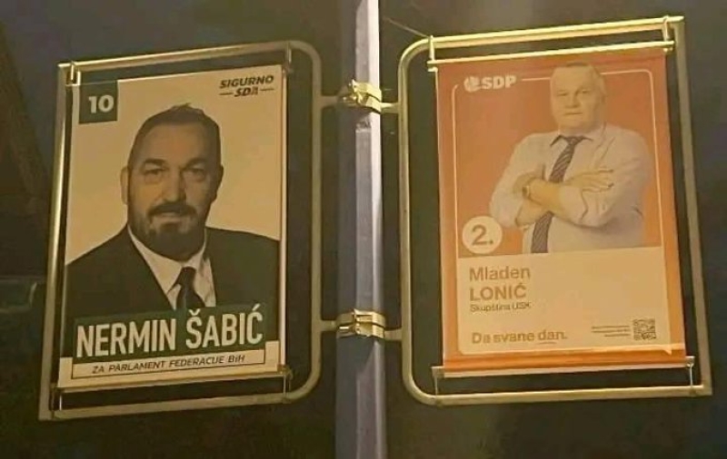 Izborni plakati fotografisani u Bosankoj Krupi na kojima su Šabić i Lonić jedan do drugog izazvali su pažnju javnosti. Šabić je kandidat za Parlament Federacije Bosne i Hercegovine, a Lonić kandidat za Skupštinu Unsko-sanskog kantona.