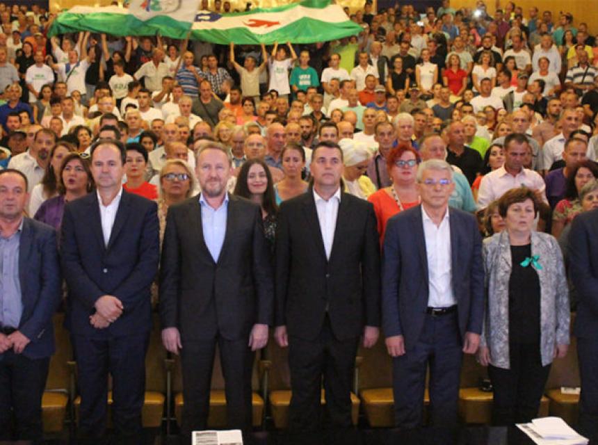 Predsjednik SDA Bakir Izetbegović i kandidat za člana Predsjedništva BiH Šefik Džaferović na stranačkoj tribini u Banovićima saopćili su da će slogan SDA u predstojećoj predizbornoj kampanji biti – „Snaga naroda“.