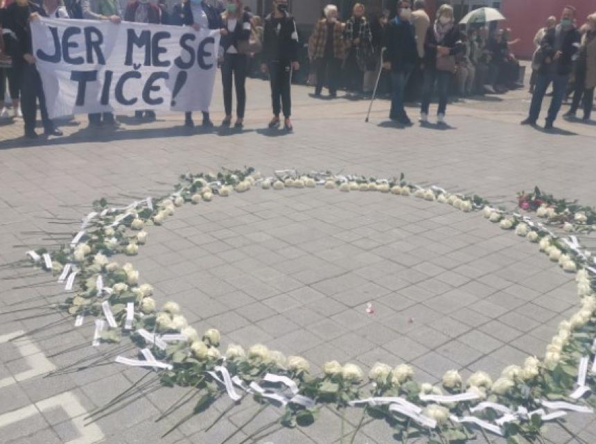 Na trgu su postavljene 102 ruže iako je osvanuo plakat koji negira bijele trake