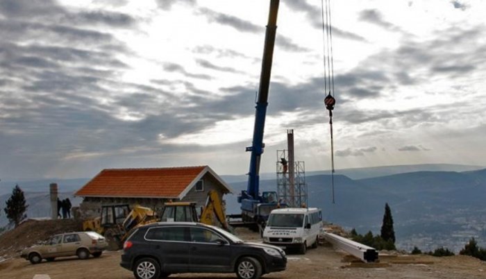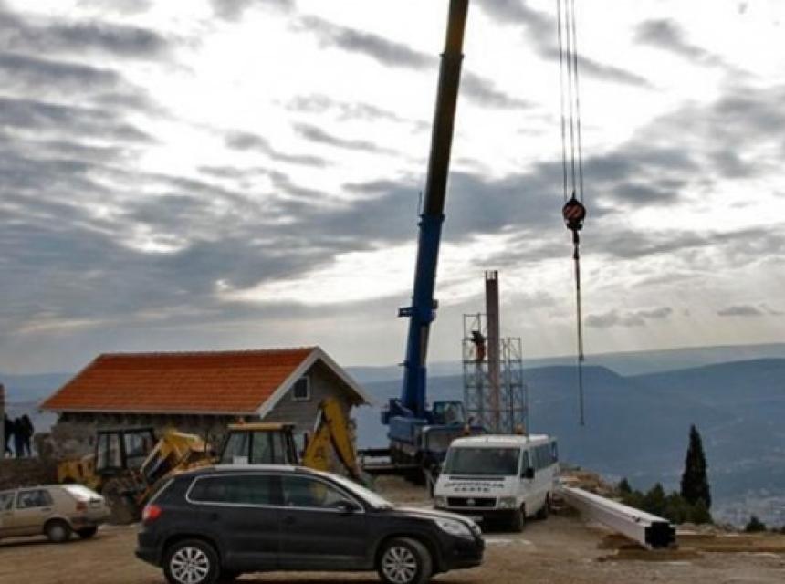 Jarbol za veliku zastavu Bosne i Hercegovine postavlja se na brdu Fortica iznad Mostara.