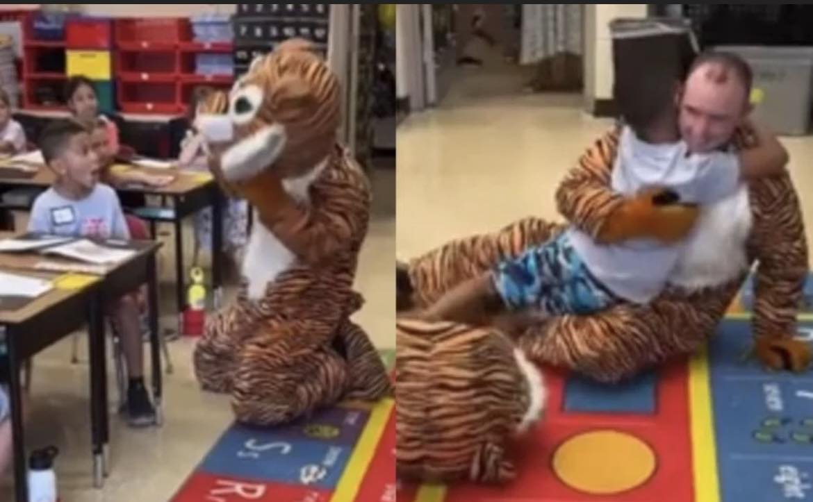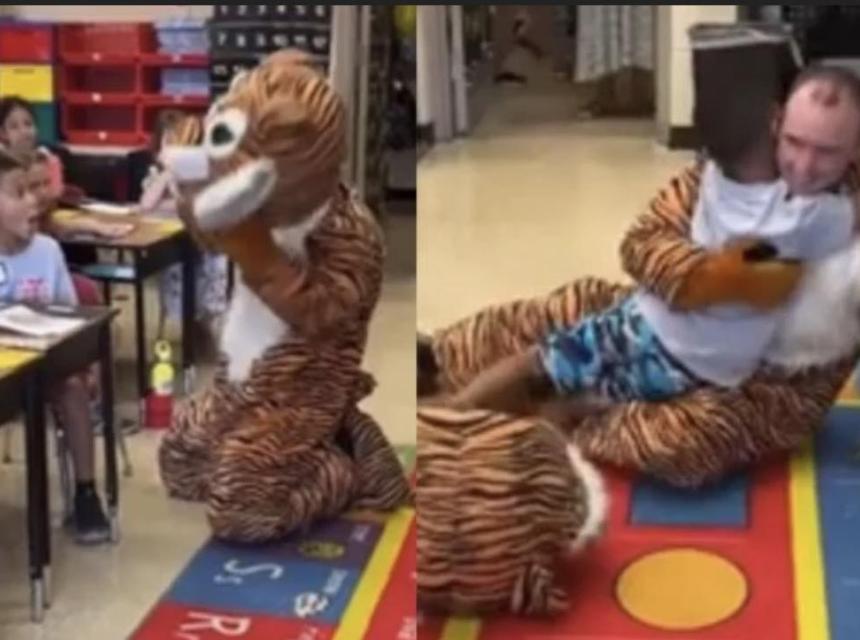 Razred je bio u školi kada je neko u kostimu tigra ušao u sobu, što je razveselilo sve prisutne. Međutim, za jednog učenika, ovo je bilo vrlo posebno iskustvo.