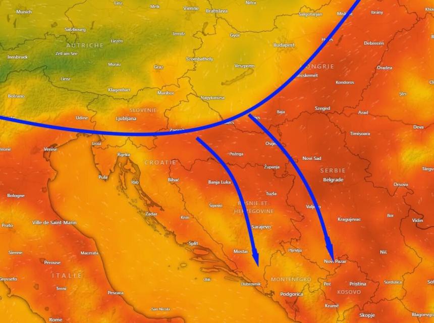Uz njen dolazak, očekuje se prolazno jak sjeverac – u pojedinim dijelovima i olujne jačine – koji će vrlo brzo rashladiti vruću podlogu. Taj vjetar bi mogao početi jačati već oko 20h, posebno u sjevernim dijelovima zemlje.