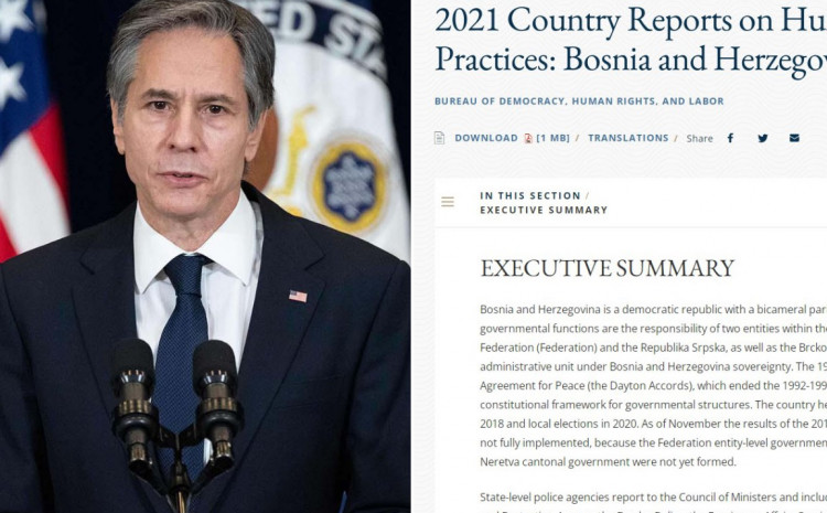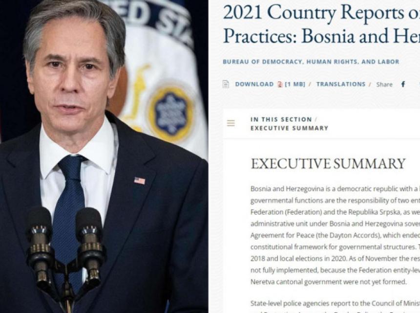 State Department je objavio izvještaj o ljudskim pravima u svijetu za prošlu godinu, u kojem je obuhvatio i Bosnu i Hercegovinu. Njega je jučer predstavio američki državni sekretar Entoni Blinken (Anthony).